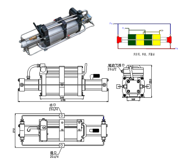 DTF-D系列是双驱动头,单极双作用泵,泵体采用优质铝合金和不锈钢缸体活塞,全部密封件均为进口优质产品,采用单气控平衡气体分配阀来实现泵的往复运动,最大设计驱动气压为10bar,适用于对气体、空气和工业气体,例如氮气、氩气、氢气和氦气等进行压缩,能够用于防爆场所,满足各种应用领域的要求。