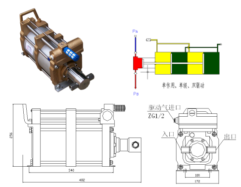 型号 | 增 压 比 | 出口 压力 bar | 入 口 A | 出 口 B | 输出压力 巴(bar) | |||||||||||||||