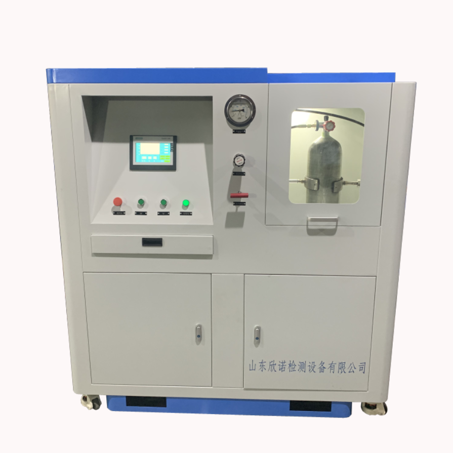 气瓶内测法水压试验机是依据为标准GB/T9251-1997《气瓶水压试验方法》及标准(参考),对气瓶进行水压试验的同时从气瓶内侧测量其容积残余变形率的一种方法。即通过测定在试验压力下进入气瓶的水量和卸压后由瓶内排出的水量,计算出气瓶在水压试验时的容积全变形和容积的残余变形值。广泛应用于:压力容器类产品的水压强度试验、变形量测试和爆破强度试验,主要是灭火器筒体,焊接(无缝)钢瓶,CNG气瓶、LPG气瓶、灭火器气瓶、消防气瓶、复合气瓶、呼吸气瓶、煤气罐钢瓶、储罐等的压力性能测试。