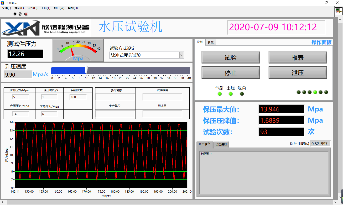 6.实时显示压力曲线,打印试验报告,保存压力数据,保存excel表格。