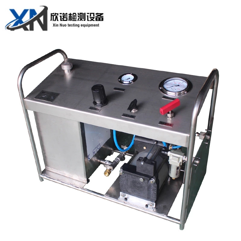 气动液体增压系统根据客户的实际需要,气动液体增压泵,油箱(水箱)和部件组装在管状框架或封闭的箱体内,结构为结构紧凑,使用方便。压力调节器,压力表,阀门等都是面板安装的。可以通过设置驱动气压调节器来调节输出压力。达到设定压力时泵自动停止,压力下降时恢复。
